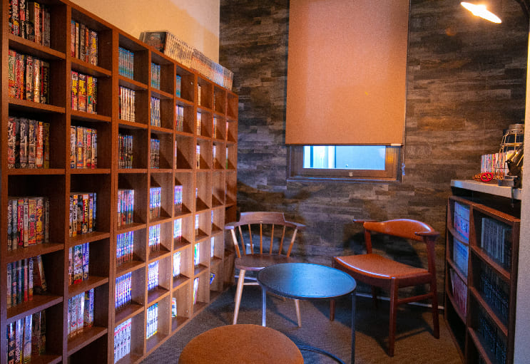 出張の夜は意外と時間を持て余すもの。そんな方のために漫画コーナーをご用意しております。ドリンクコーナーも併設しております。