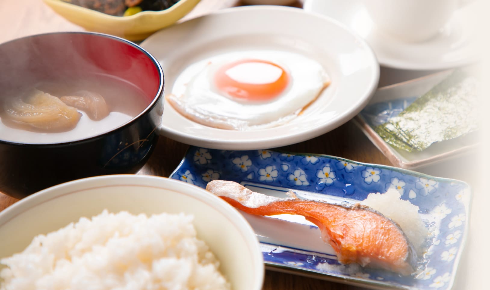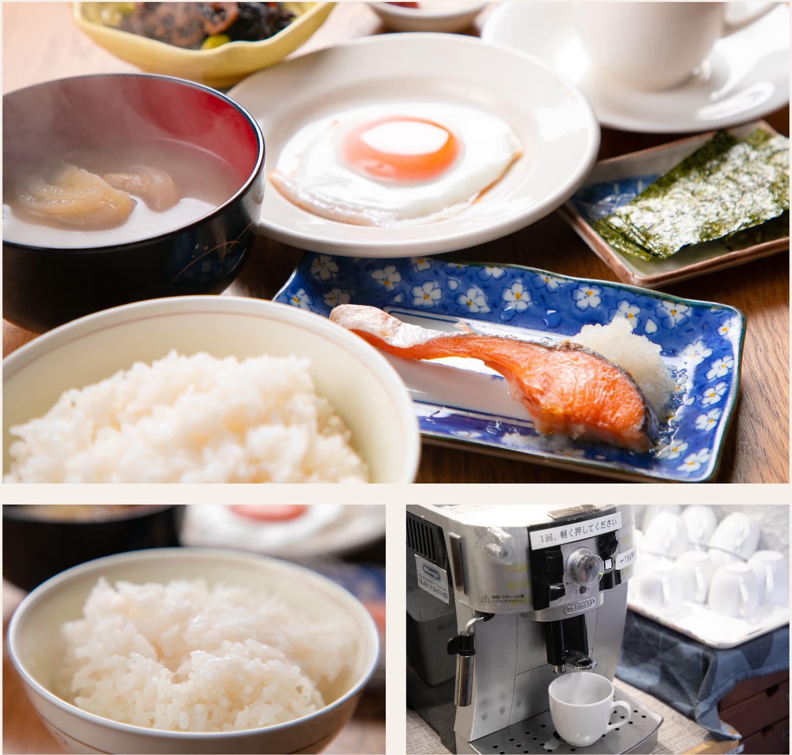 手作り朝食を提供しております。地元で作られた佐賀産の「夢しずく」を使用したふっくらご飯も好評です。